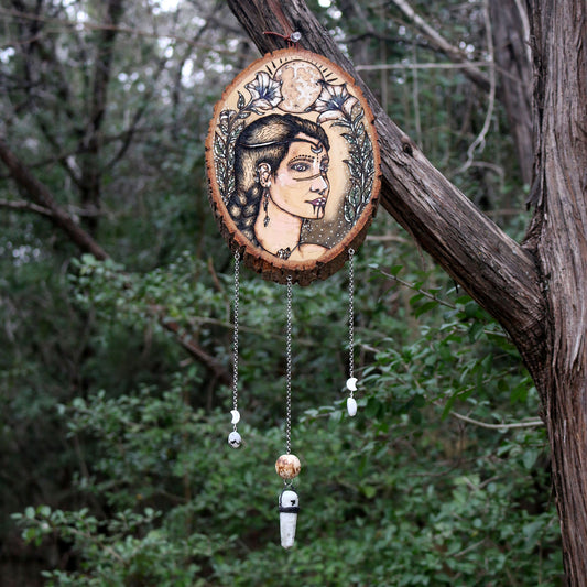 Goddess Moonflower Woodburn with Moonstone & Mother of Pearl Shell