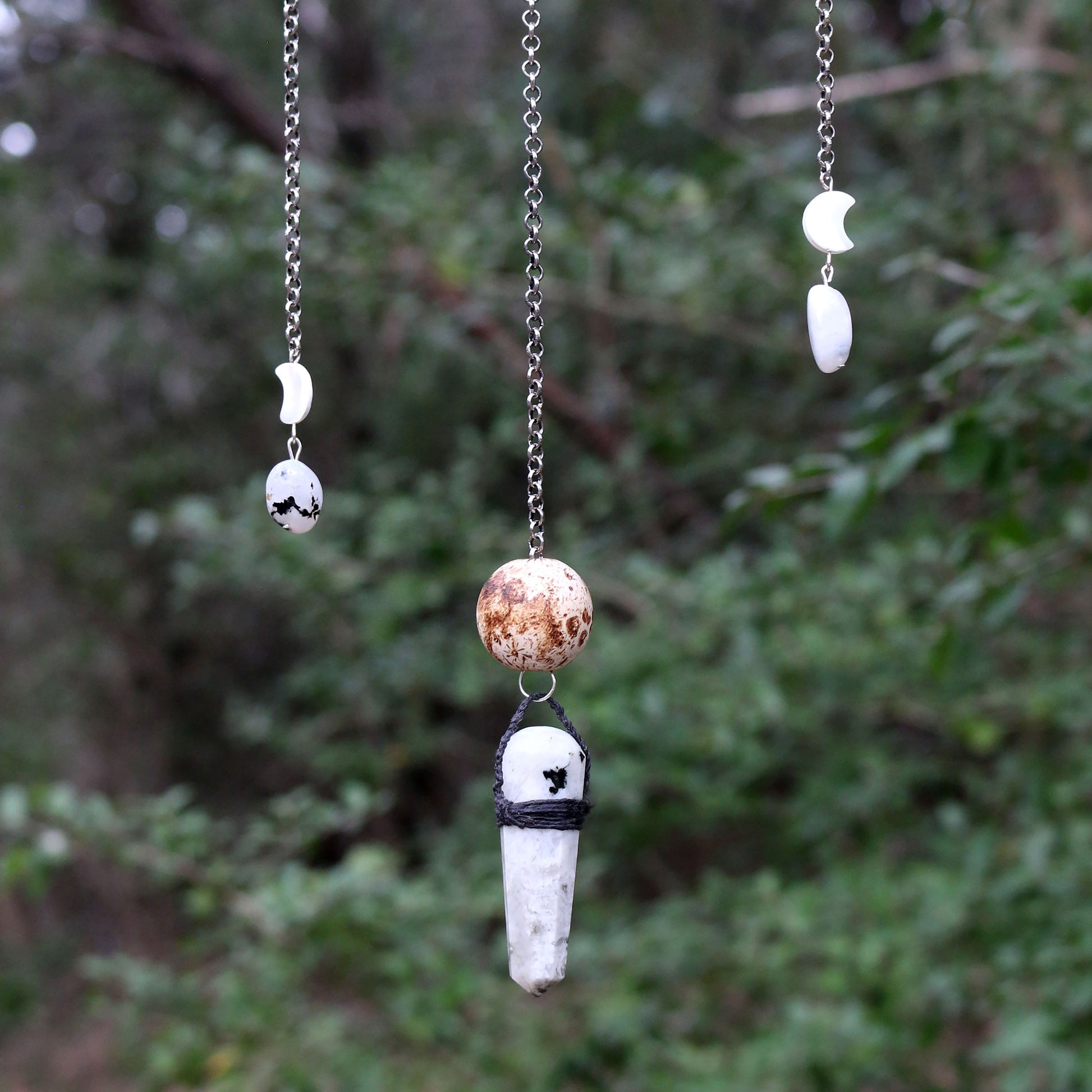 I am deeply inspired by the moon. This piece features a woman basking in the moonlight with moon flowers arching above. Moonflowers are said to represent love, romance and the femininity - much like the moon itself. The woodburn is adorned with moonstone pieces and mother of pearl crescent moon beads.