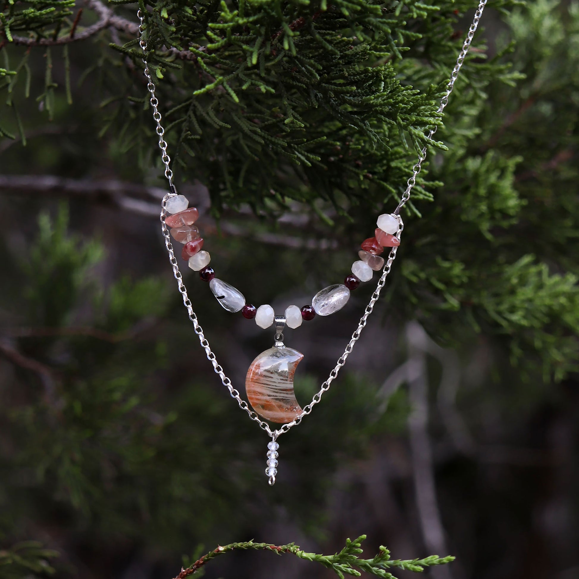 Ethereal Arusha Sunstone Sterling Silver Necklace with Quartz, Garnet, Topaz, Lazasine & Moonstone