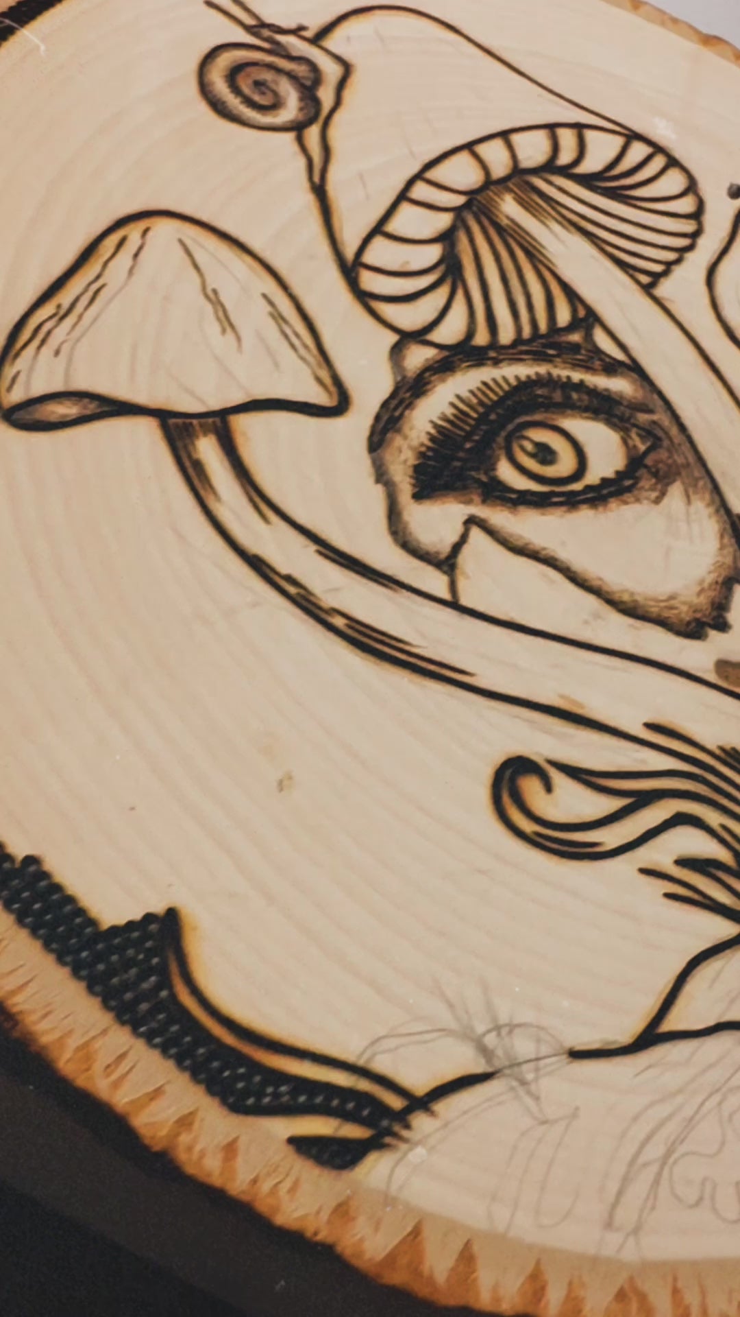 Imagine you are a small creature residing in a dark cave with only a tiny hole letting in light. Someone is peering in and they see a terrarium with mushrooms, moss, and other insect creatures! I loved creating this piece because the perspectives are switched and I'd imagine with is where a fairy would dwell.