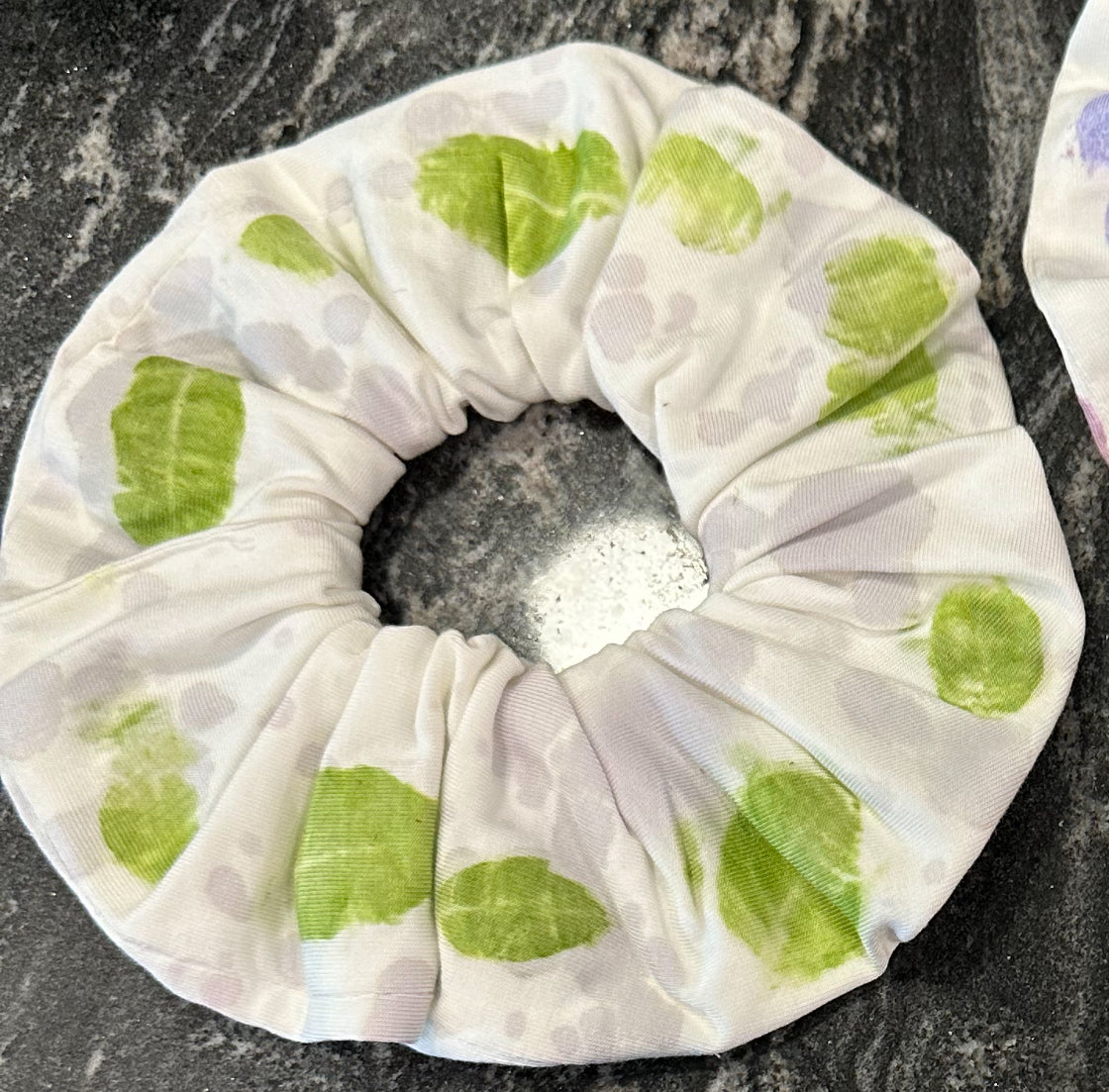 NOTE: This scrunchie was sewn slightly twisted and the print dyes will be uneven