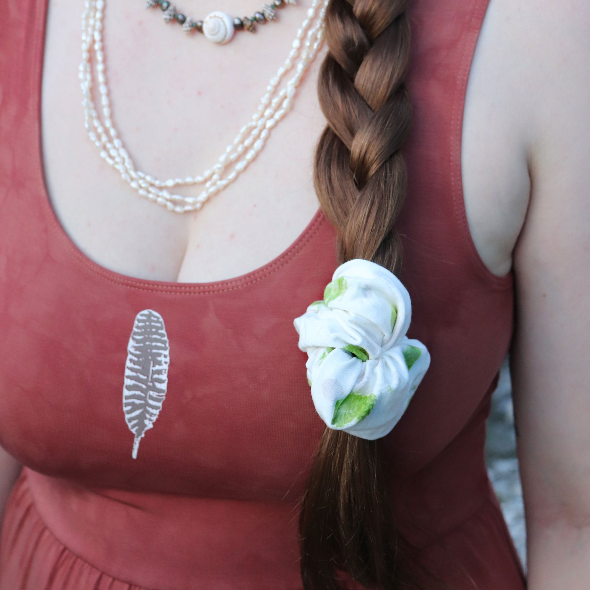 *please note, this scrunchie is botanically dyed and will naturally fade over time with washing and sun exposure*